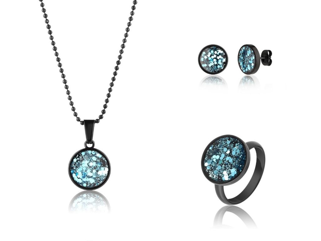 černý set s modrými třpytky