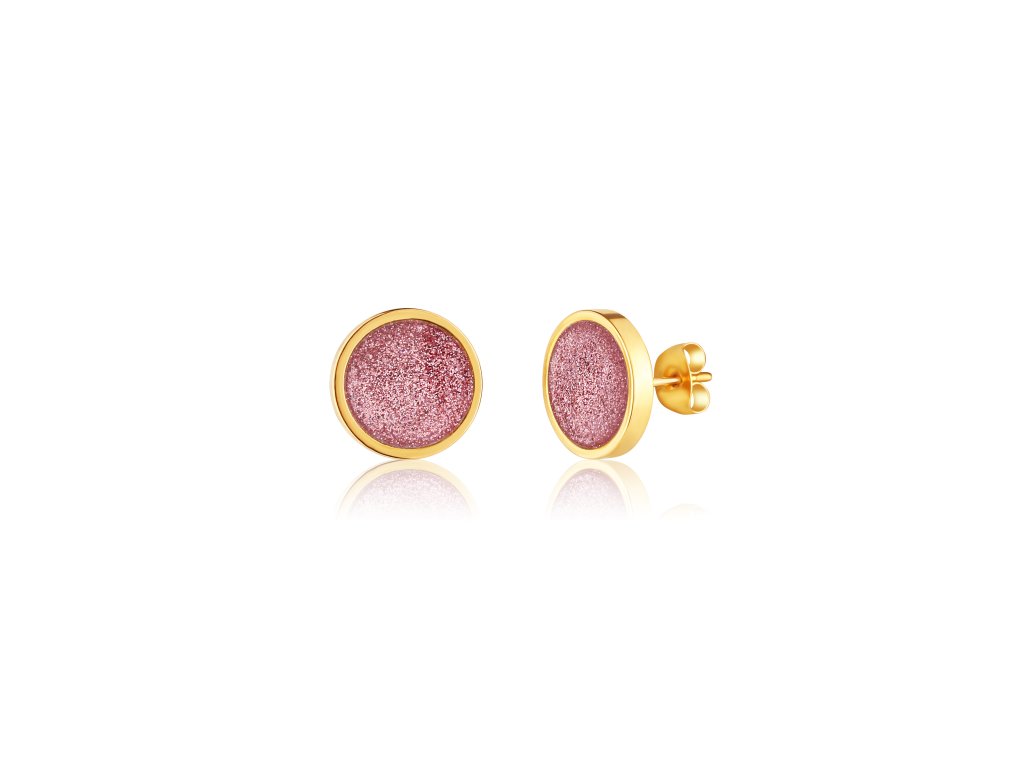 dětské náušnice s růžovými třpytky ve zlatém provedení