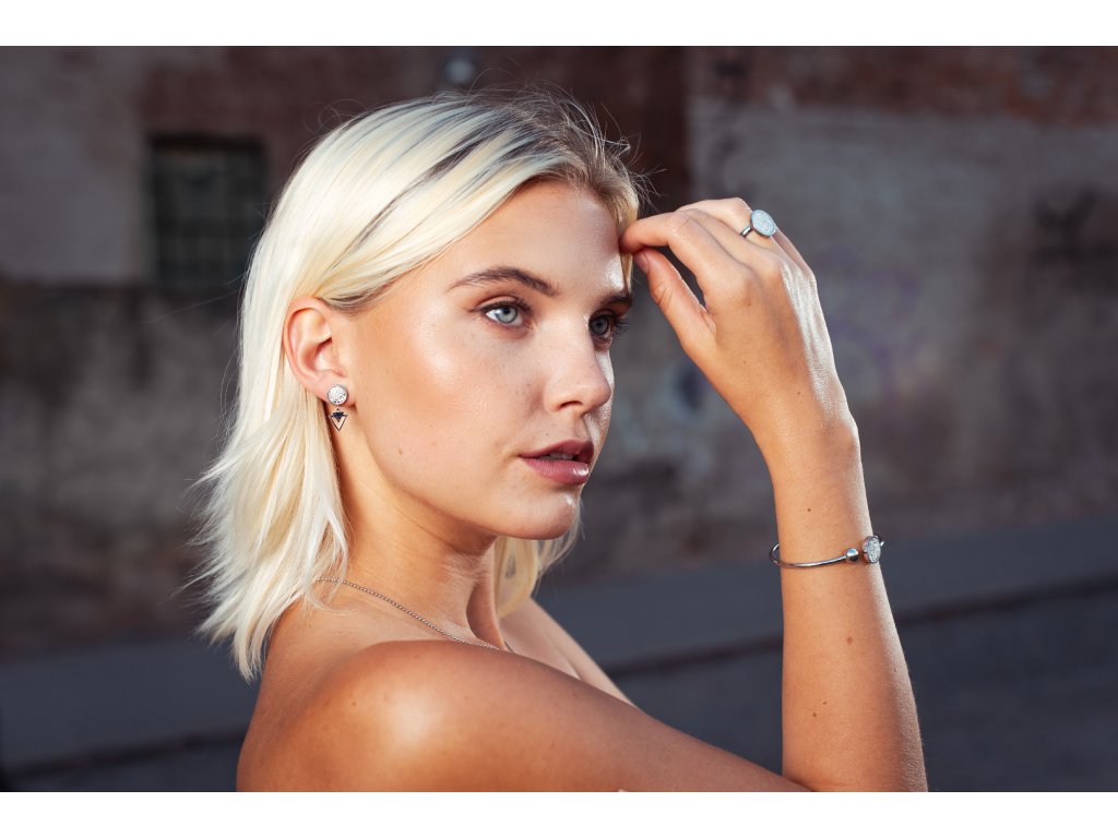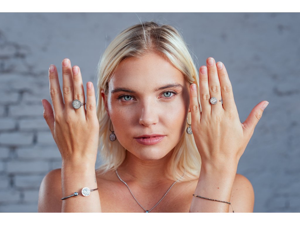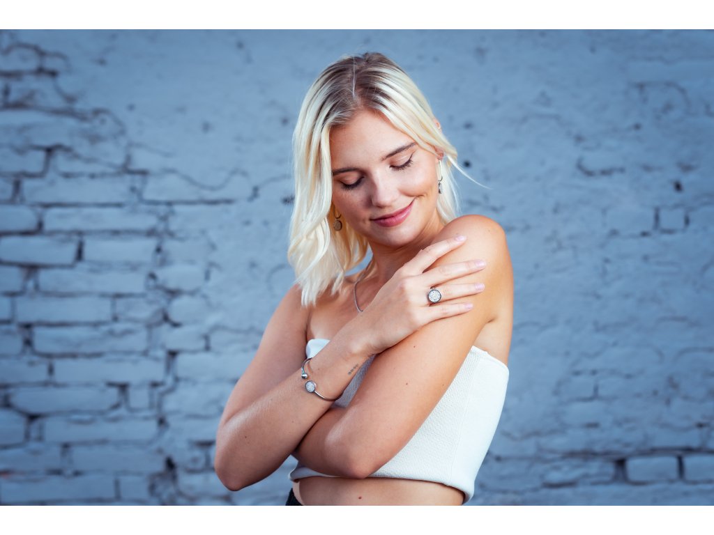 ocelový náramek se stříbrným sklem