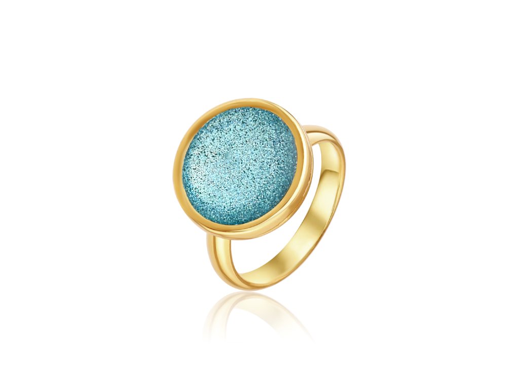 prsten s jemnými tyrkysovými třpytky